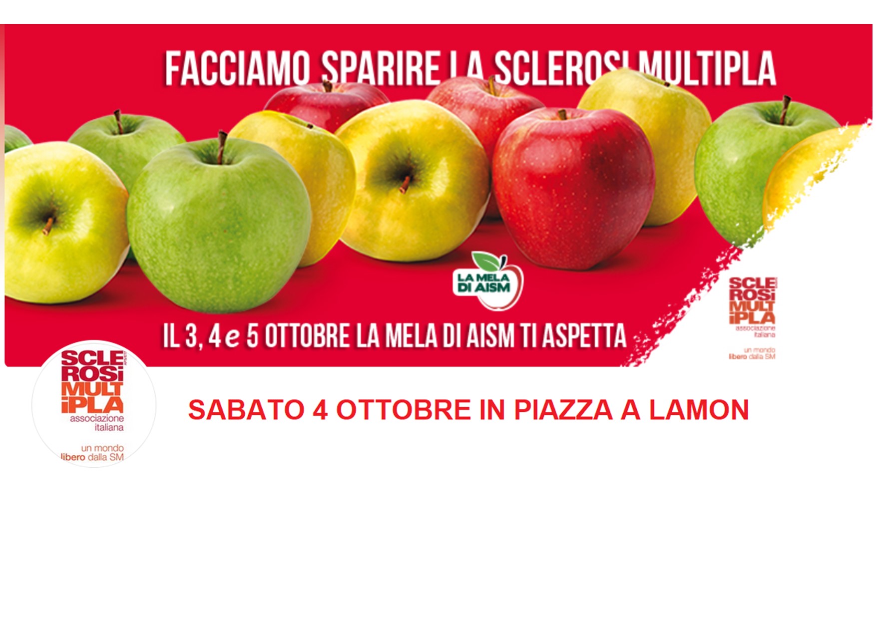 Domani mattina sabato 4 ottobre anche i nostri volontari saranno in piazza per sostenere l'iniziativa dell' AISM. Grazie in anticipo a chi vorrà passare ad acquistare le mele. Cari saluti Auser Il Filò - Lamon ... [Leggi tutto]
