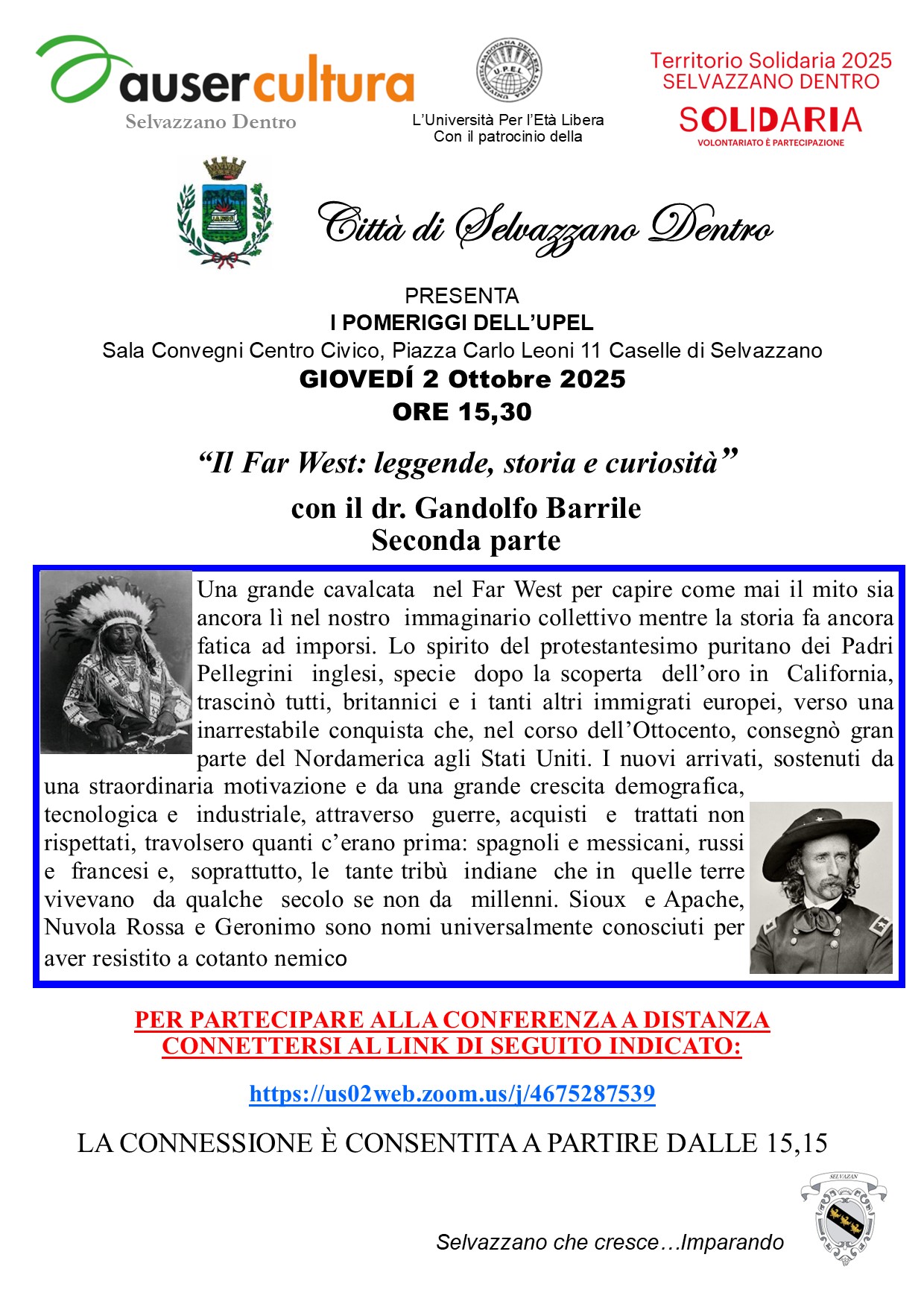 Questo giovedì si terrrà la seconda parte della conferenza su "Il Far West:leggende, storia e curiosità"