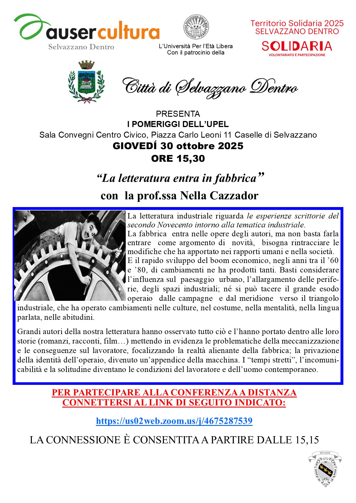 La letteratura industriale riguarda le esperienze scrittorie del secondo Novecento intorno alla tematica industriale. La fabbrica entra nelle opere degli autori, ma non basta farla entrare come argomento di novità, bisogna rintracciare le modifiche che ha aportato nei rapporti umani e nella società.