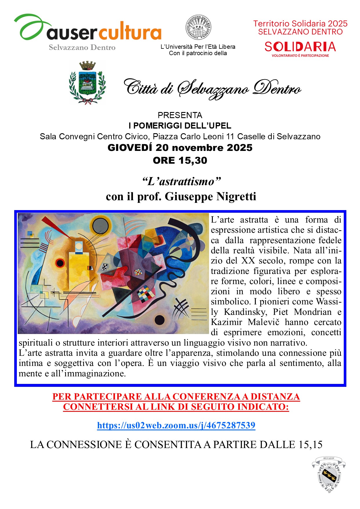 I Giovedì dell'Upel 16 nov 2025, Autore: AUSER DI SELVAZZANO DENTRO APS "l'Astrattismo" con il prof. Giuseppe Nigretti Allegati 2025-11-20.pdf Download