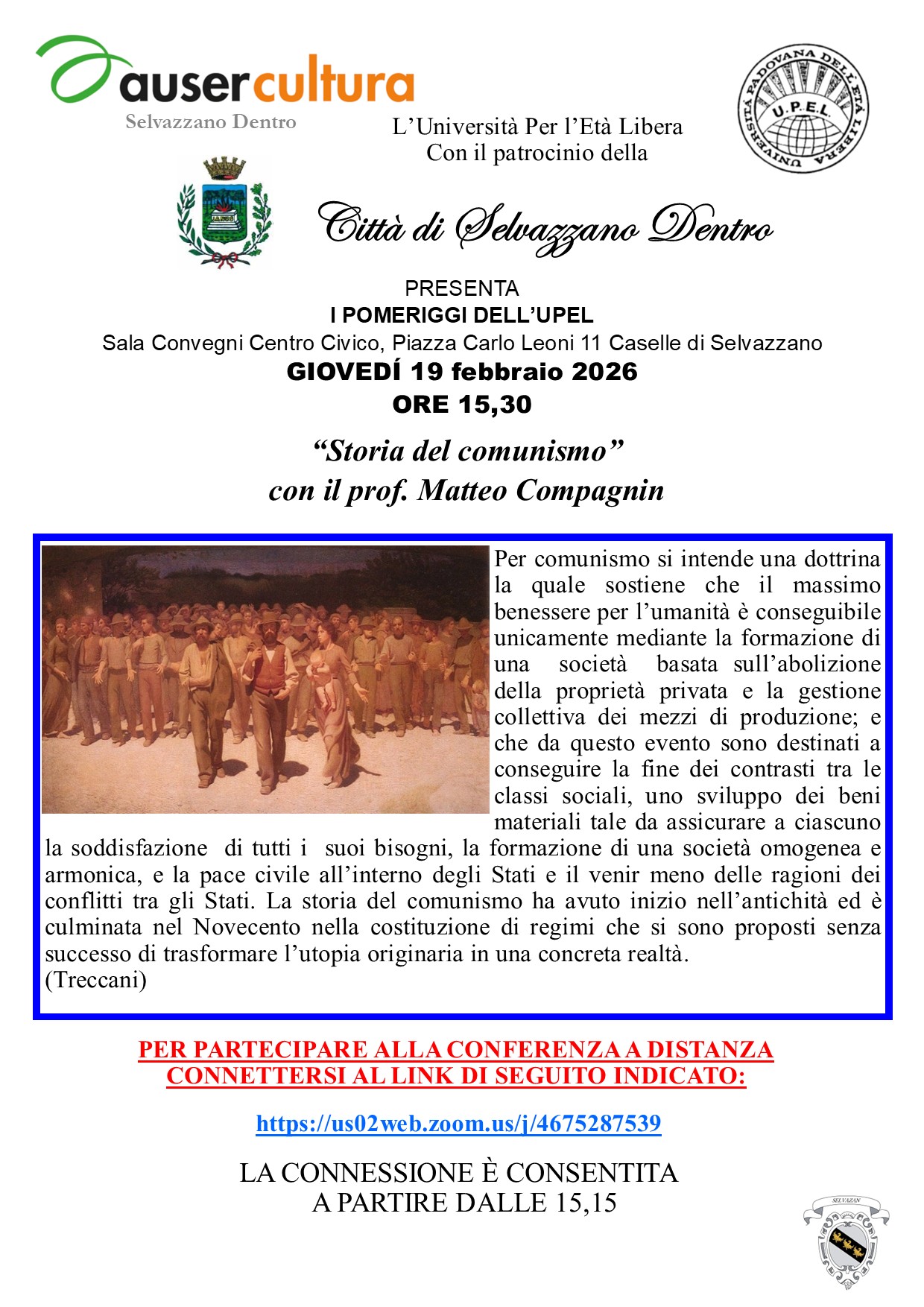 I Giovedì dell'Upel 16 feb 2026, Autore: AUSER DI SELVAZZANO DENTRO APS "Storia del comunismo" con il prof. Matteo Compagnin Allegati 2026-02-19.pdf Download