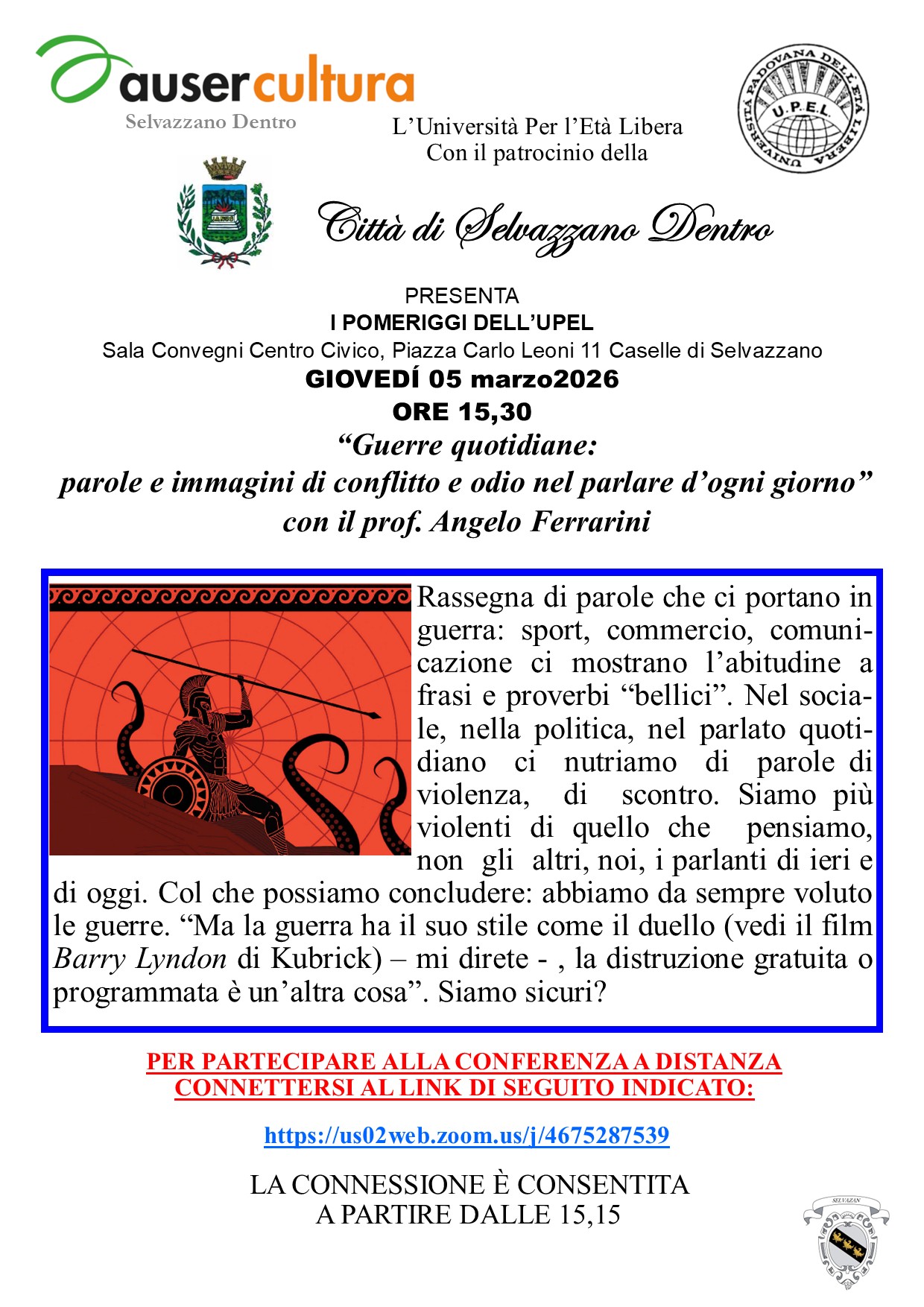 "Guerre quotidiane: parole e immagini di conflitto e odio nel parlare d'ogni giorno" con il prof. Angelo Ferrarini