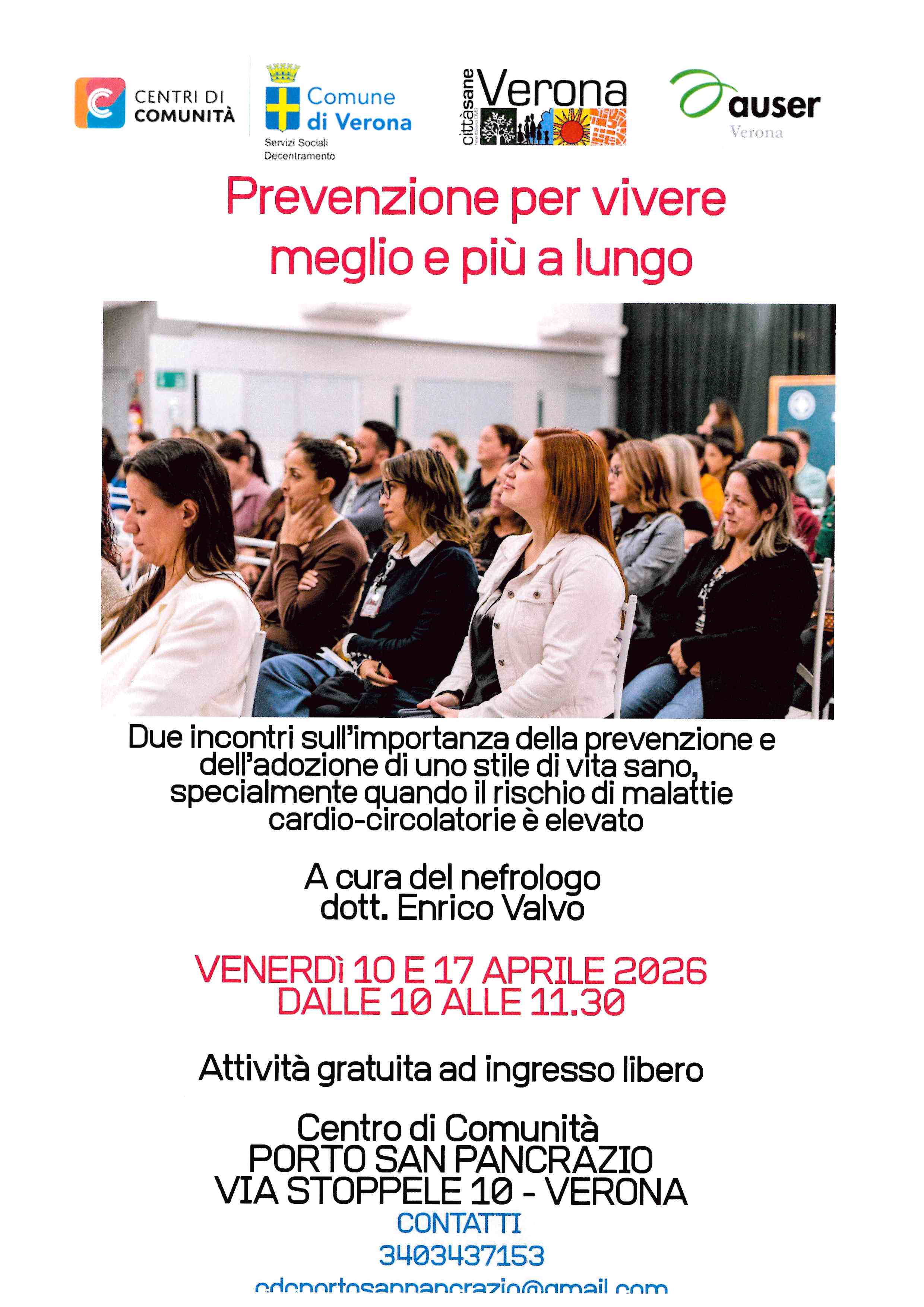 Incontro con il medico 20 gen 2026, Autore: AUSER TERRITORIALE DI VERONA APS Due interessanti incontri presso il centro di comunità di Porto San Pancrazio!