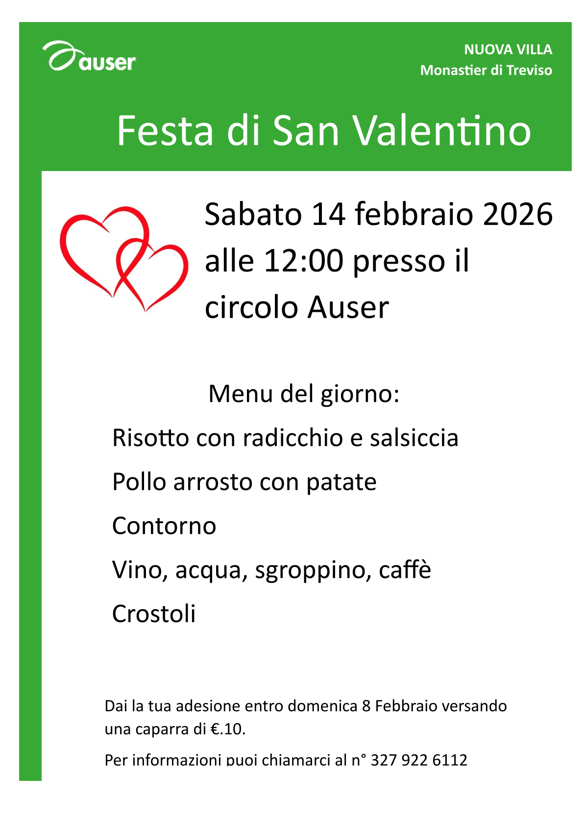 room LUOGO: Monastier - via Pralongo 13 event DATA INIZIO: 14/02/2026 alle ore 12:00 event DATA FINE: 14/02/2026 alle ore 15:00