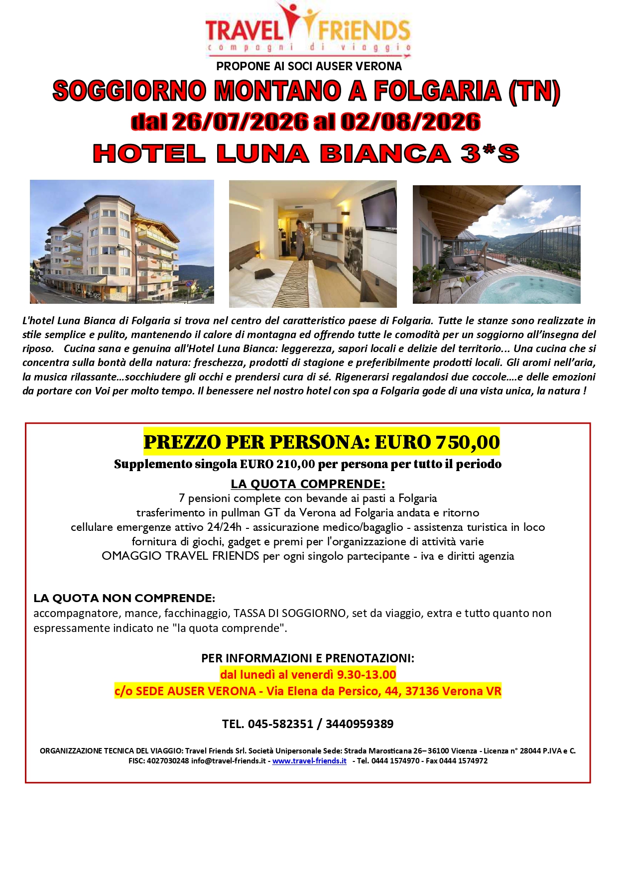 Alleghiamo i soggiorni estivi previsti per questa estate: