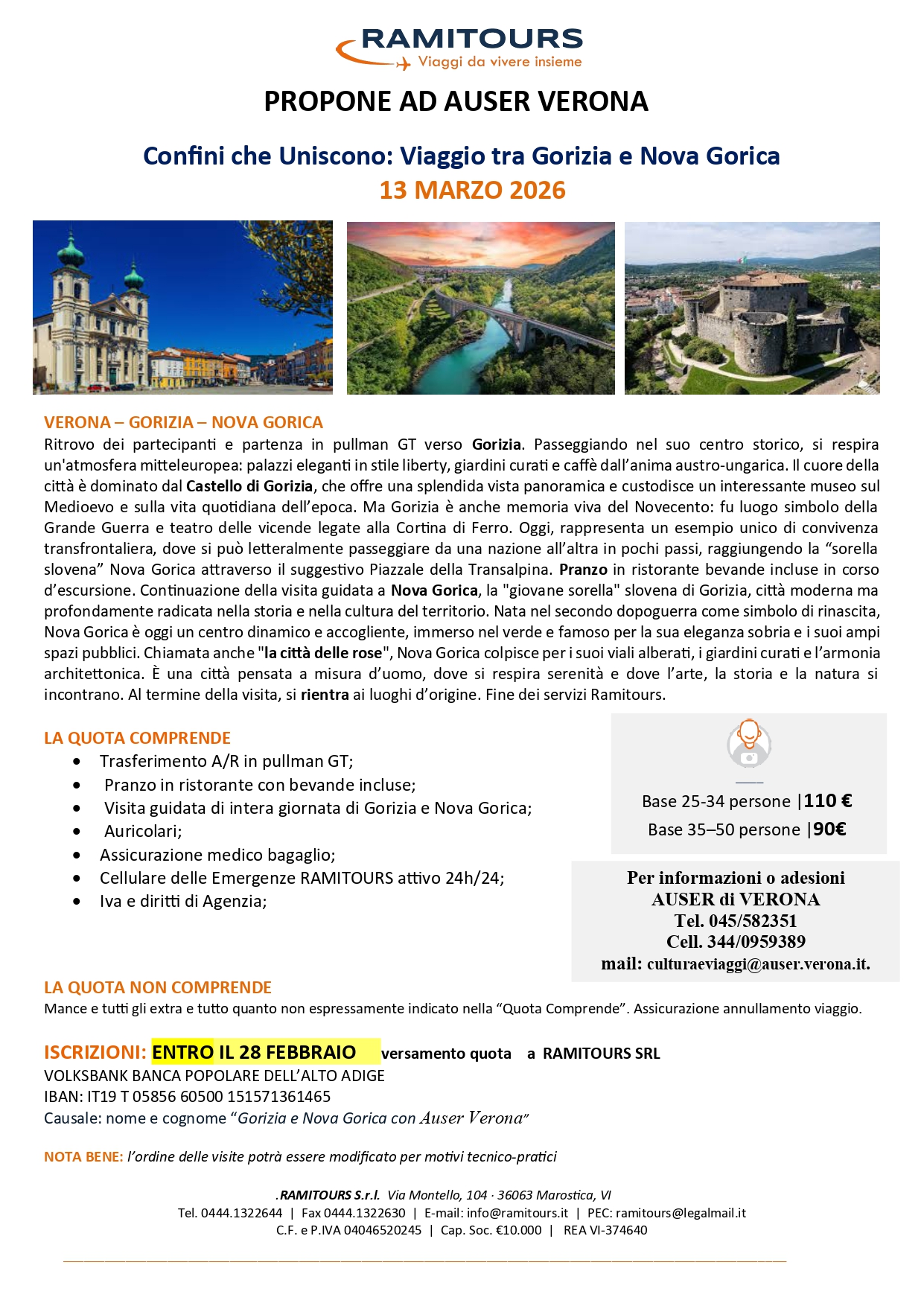 Alleghiamo alla presente locandina e modulo iscrizione Gita giornaliera Gorizia e Nova gorica.