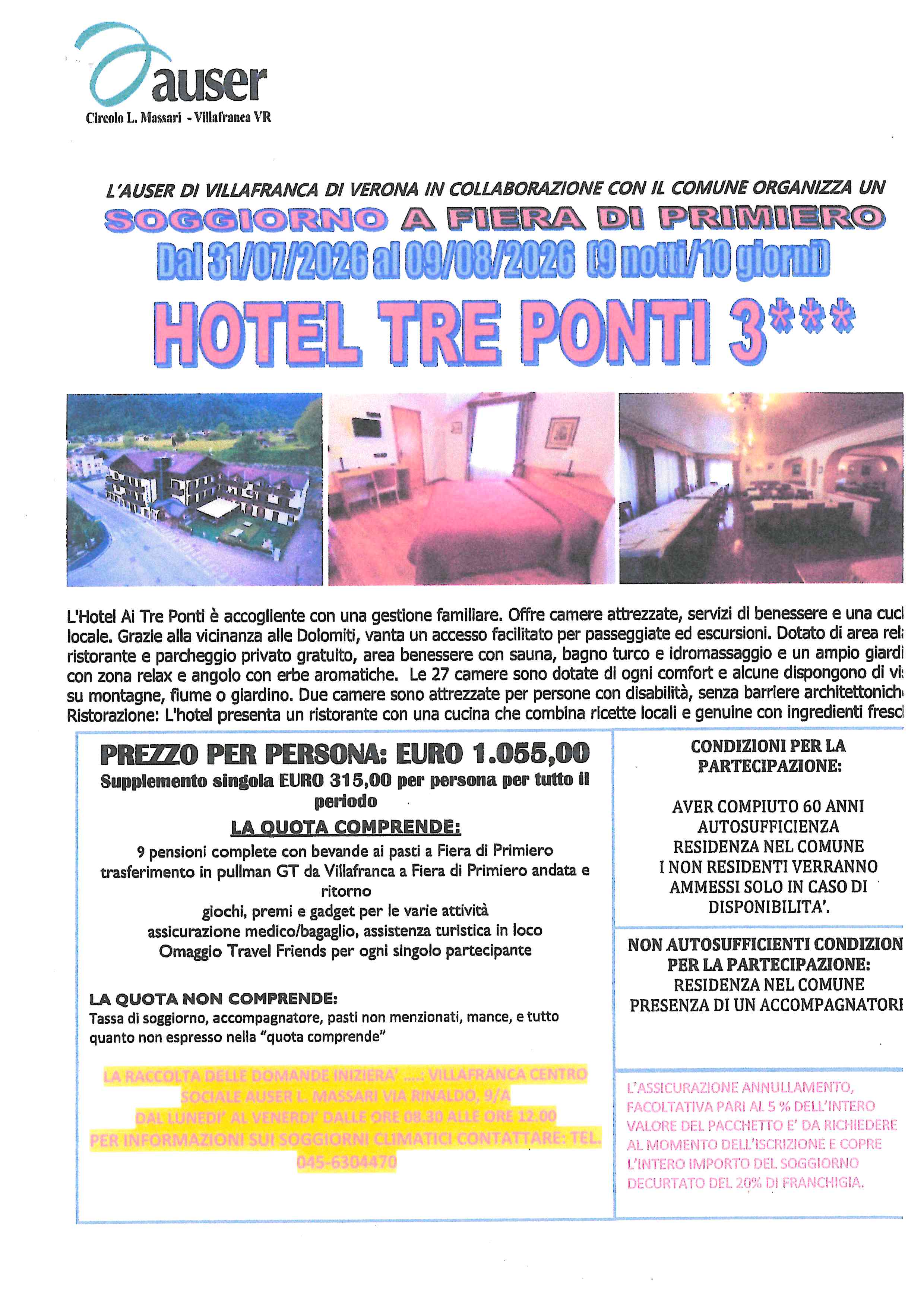 - Fiera di Primiero dal 31/07 al 09/08 - Hotel tre ponti 3***