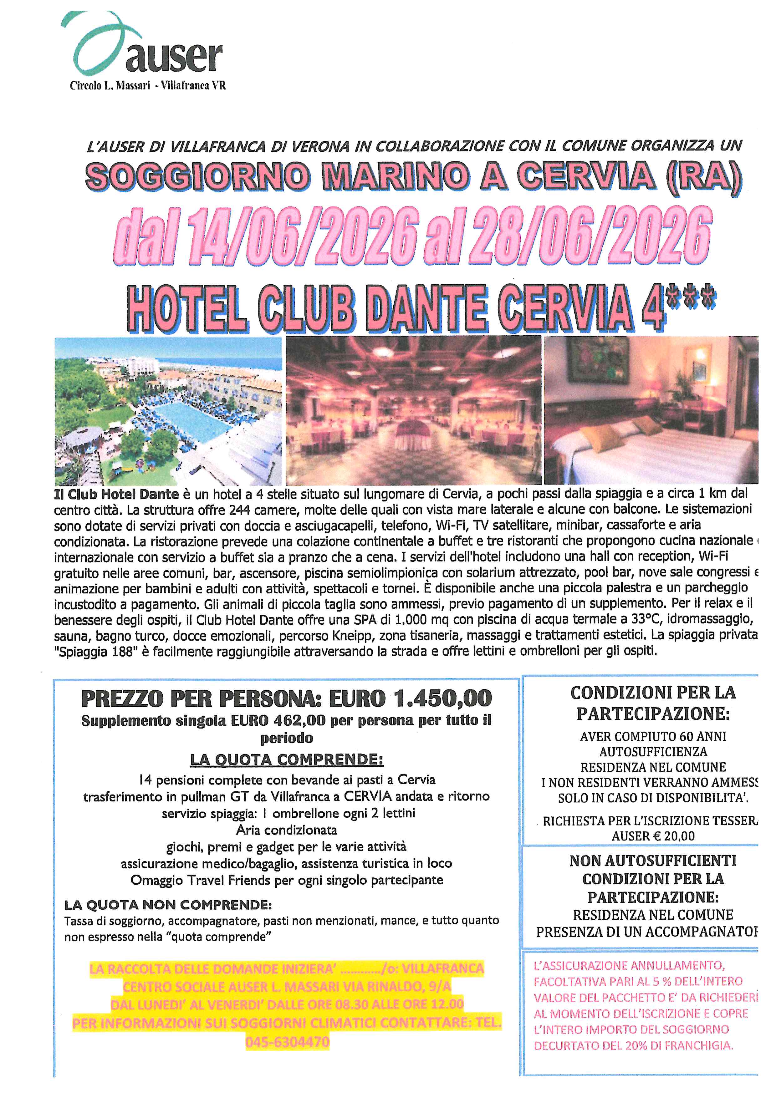 -Cervia dal 14/06 al 28/06 - Hotel club Dante Cervia 4****