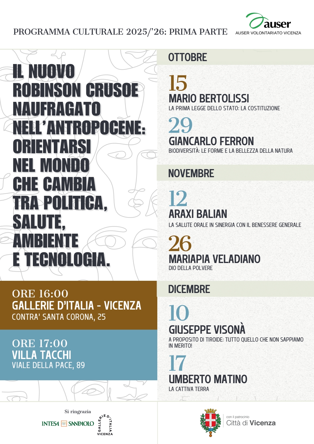 PROGRAMMA CULTURALE AUSER VICENZA - 2025/'26: PRIMA PARTE 22 set 2025, Autore: AUSER VOLONTARIATO VICENZA ODV ... [Leggi tutto]