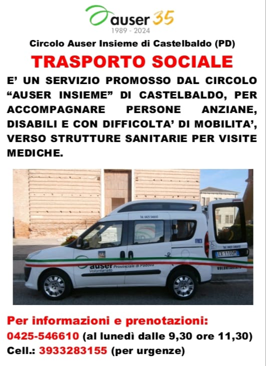 Si comunica che è attivo il nuovo numero di cellulare 3933283155 oltre al numero fisso 0425546610 per le richieste di trasporto.