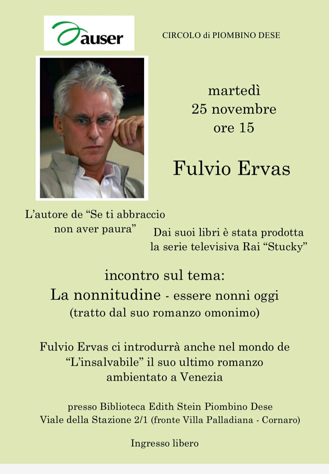 Il professor Fulvio Ervas, scrittore di fama ci presenrerà il tema "La nonnitudine - essere nonni oggi"