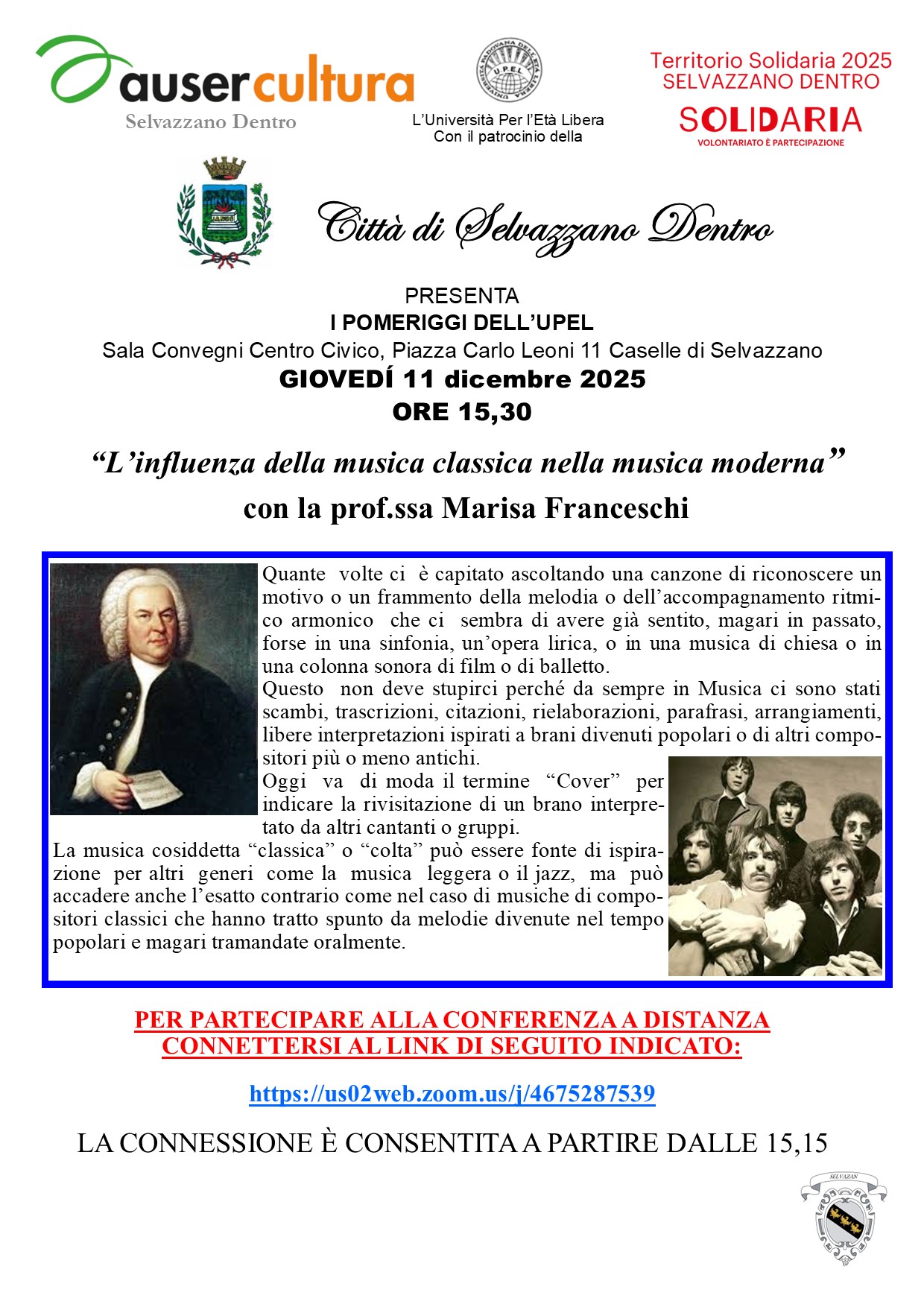 I giovedì dell'UPEL 08 dic 2025, Autore: AUSER DI SELVAZZANO DENTRO APS Il classico va di moda. L'influenza della musica classica nella musica moderna. Allegati 2025-12-11.pdf Download