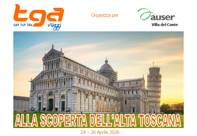 ALLA SCOPERTA DELL'ALTA TOSCANA 17 dic 2025, Autore: AUSER VILLA DEL CONTE ODV - ONLUS Gita culturale "ALLA SCOPERTA DELL'ALTA TOSCANA" Auser Villa del Conte promuove questa gita culturale, non si tra ... [Leggi tutto]