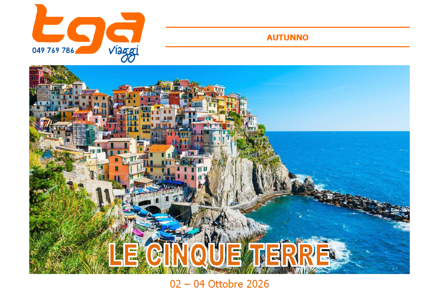 LE CINQUE TERRE 17 dic 2025, Autore: AUSER VILLA DEL CONTE ODV - ONLUS Gita culturale "LE CINQUE TERRE" Auser Villa del Conte promuove questa gita culturale, non si tratta solo di vedere p ... [Leggi tutto]