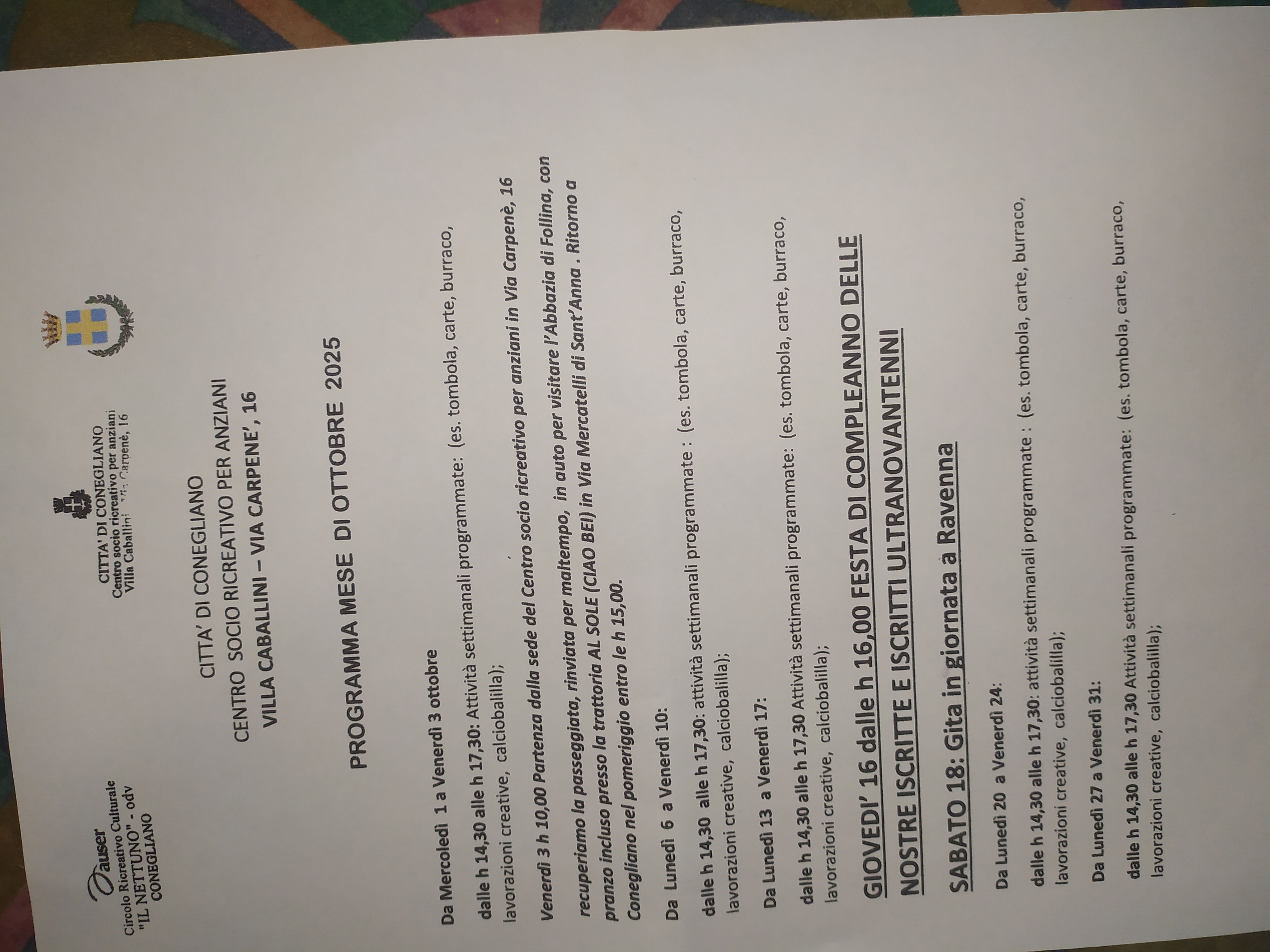 ATTIVITA' OTTOBRE 2025 01 ott 2025, Autore: AUSER CIRCOLO RICREATIVO CULTURALE IL NETTUNO ODV-ONLUS Allegati 2025.10_programma.jpg Download