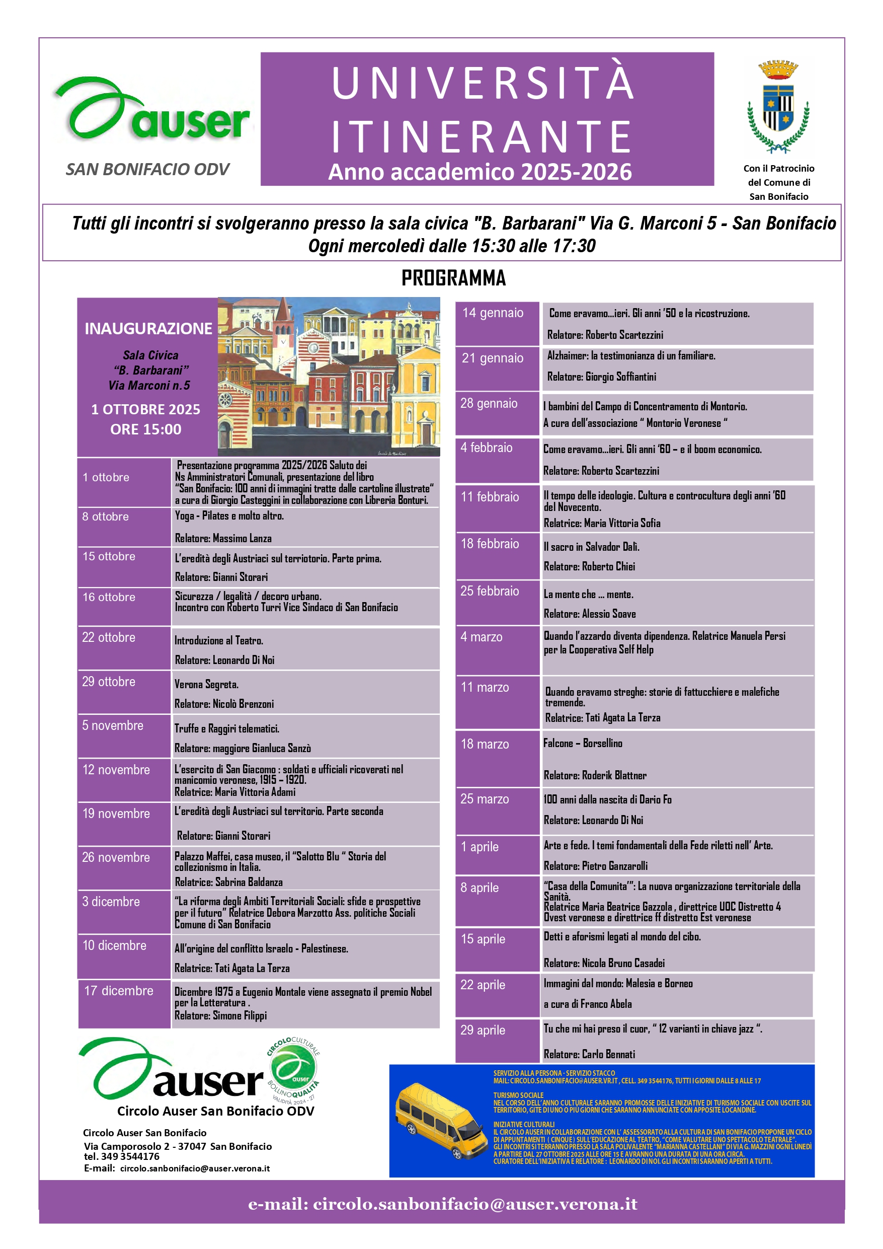 INCONTRO DEL 1 Ottobre 2025 PRESSO LA SALA BARBARANI DI SAN BONIFACIO ORE 15