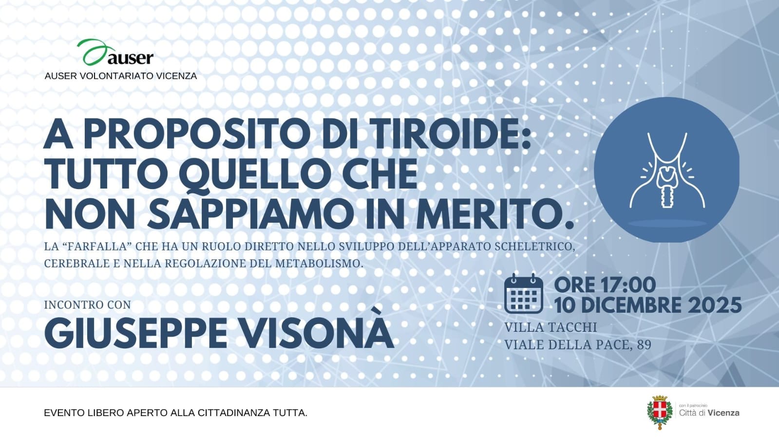 CONFERENZA: A PROPOSITO DI TIROIDE, TUTTO QUELLO CHE NON SAPPIAMO IN MERITO 02 dic 2025, Autore: AUSER VOLONTARIATO VICENZA ODV ... [Leggi tutto]