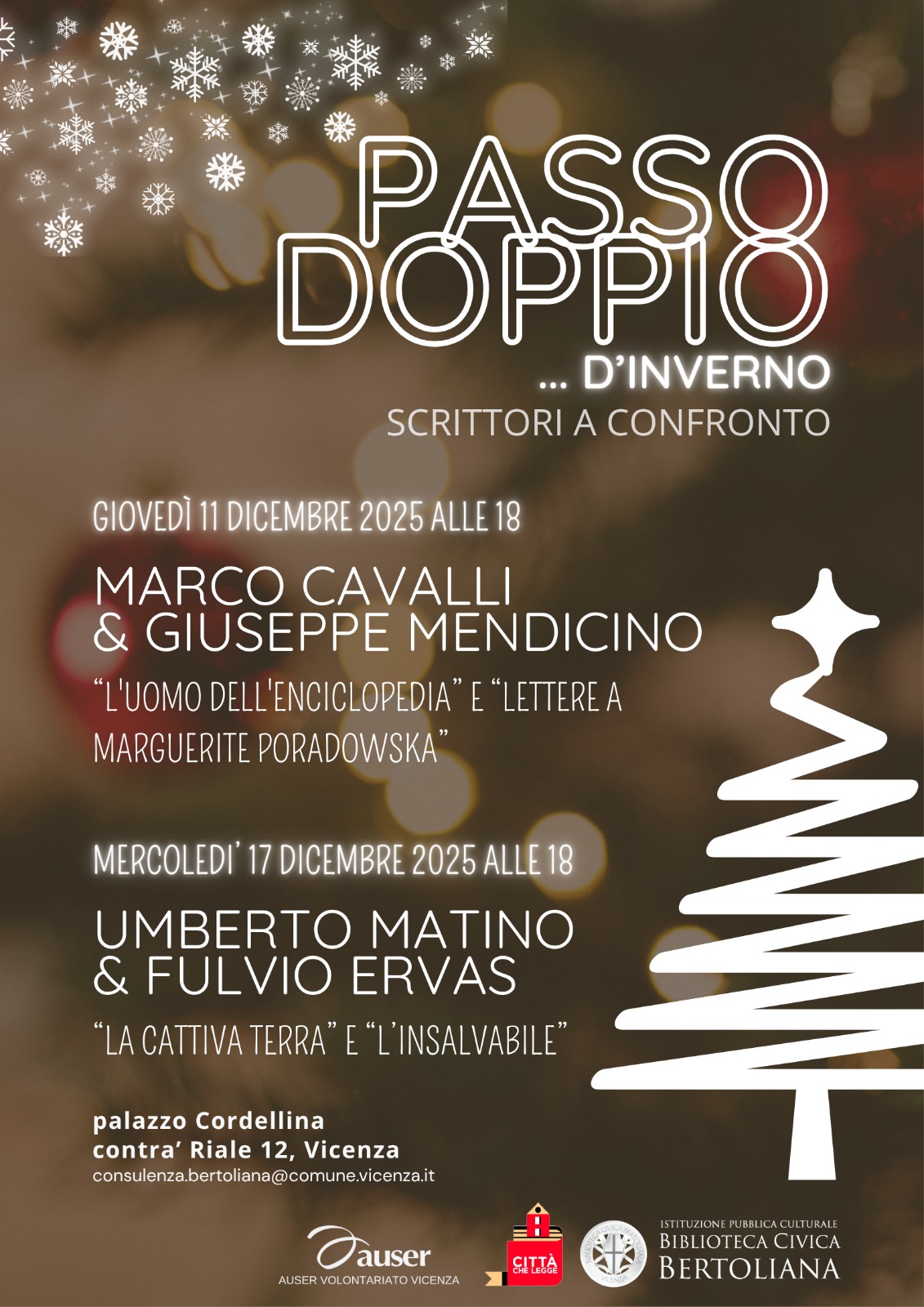 PASSO DOPPIO, SCRITTORI A CONFRONTO - Palazzo Cordellina, contrà Riale 12 - Vicenza 11 dic 2025, Autore: AUSER VOLONTARIATO VICENZA ODV ... [Leggi tutto]